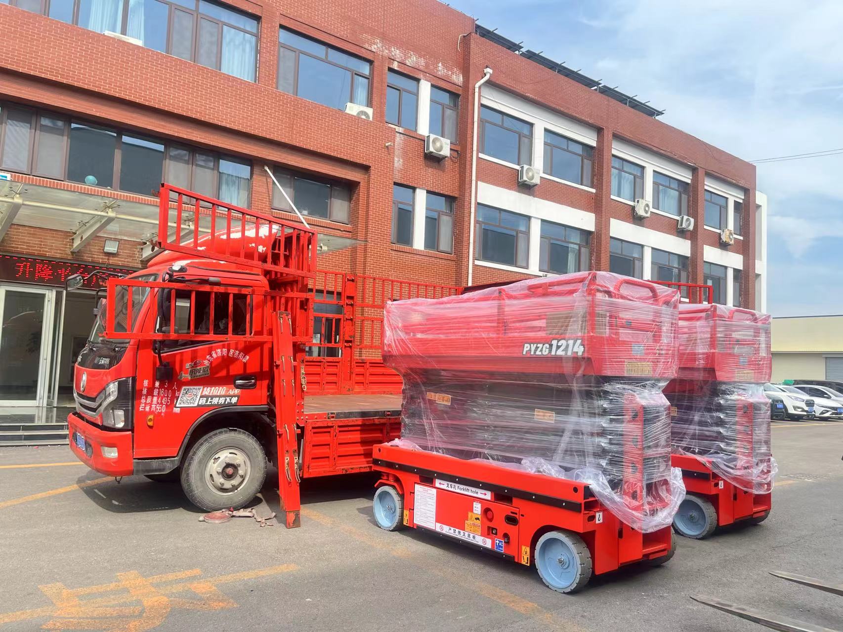 賀兩臺12米全自行升降機(jī)順利裝車發(fā)貨
